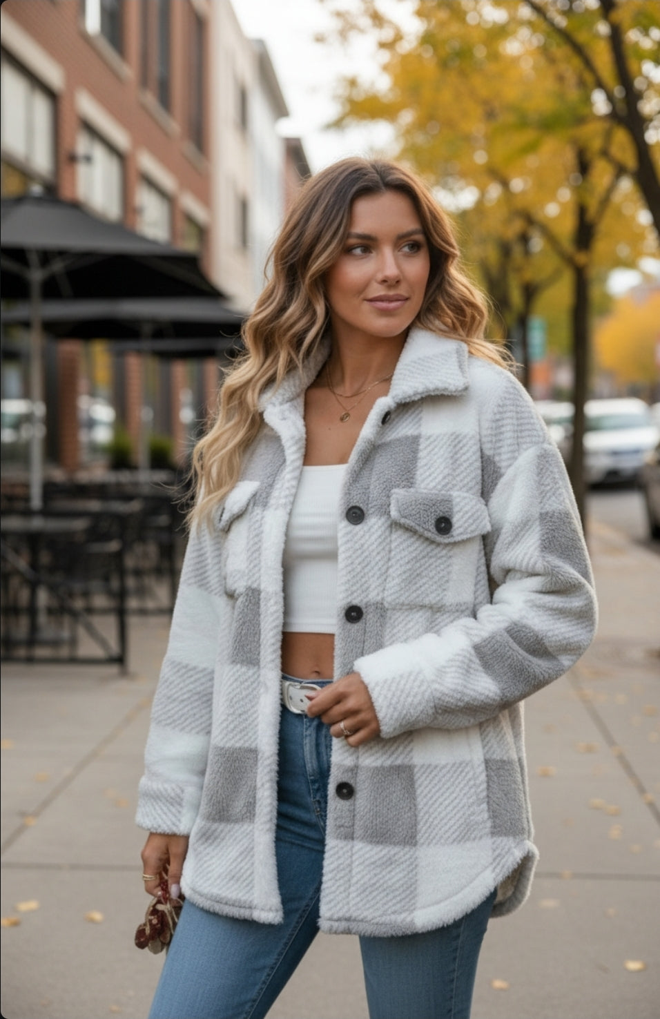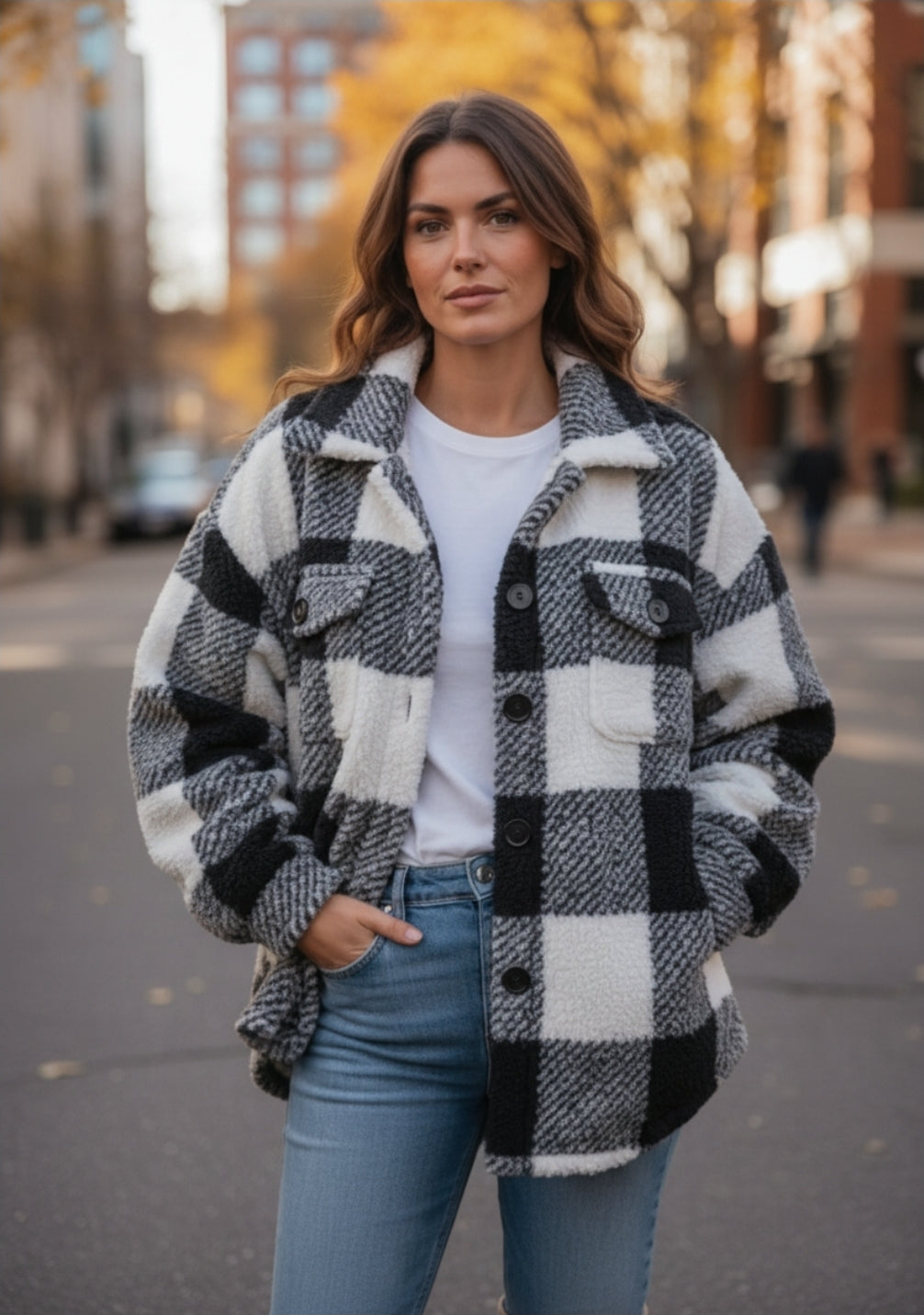 Bleibe diesen Winter warm und stilvoll mit unserem Damen Karierten Teddy-Jackett. Das weiche, dicke Material sorgt für höchsten Tragekomfort, während das moderne Karomuster deinem Outfit einen winterlichen Look verleiht. Ideal für kalte Tage, Weihnachtsmärkte oder einen gemütlichen Alltagsstil.