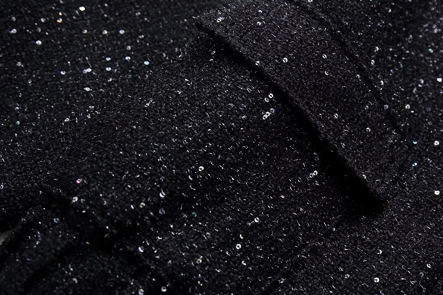 Diese schwarze Glitzer-Jacke bringt sofort Style und Eleganz in jeden Look.