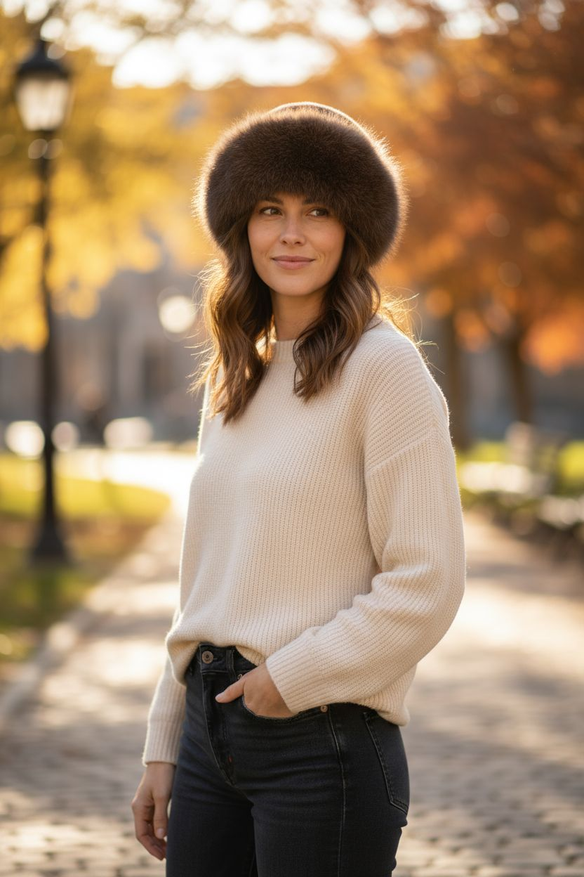Tauche ein in wohlige Wärme und zeitlosen Stil. Unsere Kuschelige Pelzmütze umhüllt dich sanft mit ihrem flauschigen, weichen Fell und hält dich selbst an den kältesten Wintertagen angenehm warm. Ob beim Spaziergang im Schnee, auf dem Weihnachtsmarkt oder einfach unterwegs sie verleiht jedem Outfit einen Hauch von Eleganz und Gemütlichkeit.