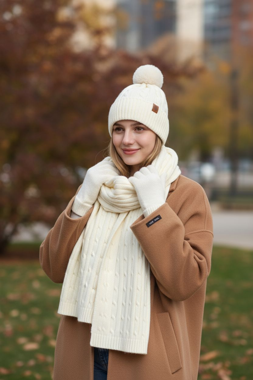 Komplettes 3-teiliges Set: Mütze, Schal & Handschuhe